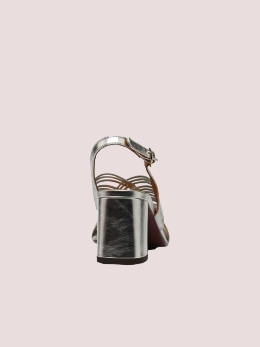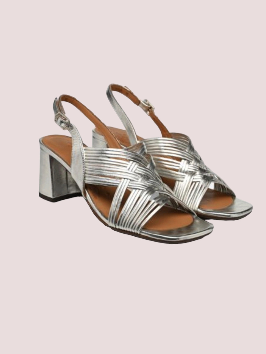 Zilver kleur Hakhoogte: 6 cm bij maat 37 gemeten in het midden van de hiel.