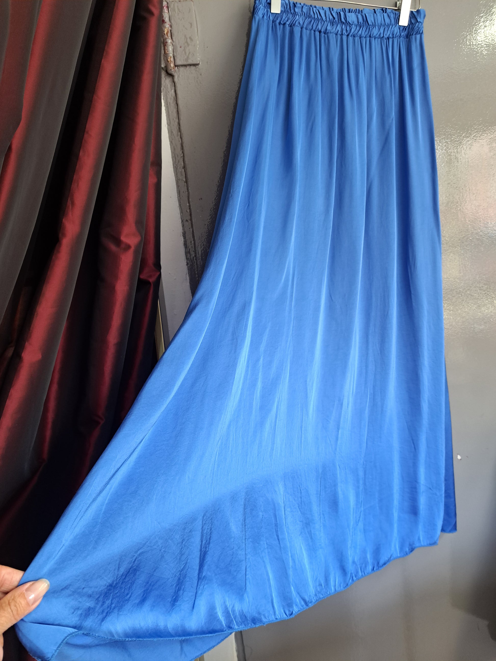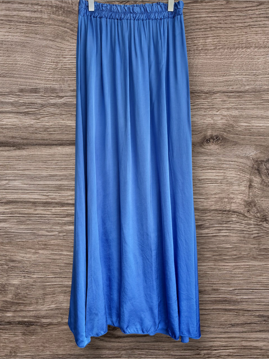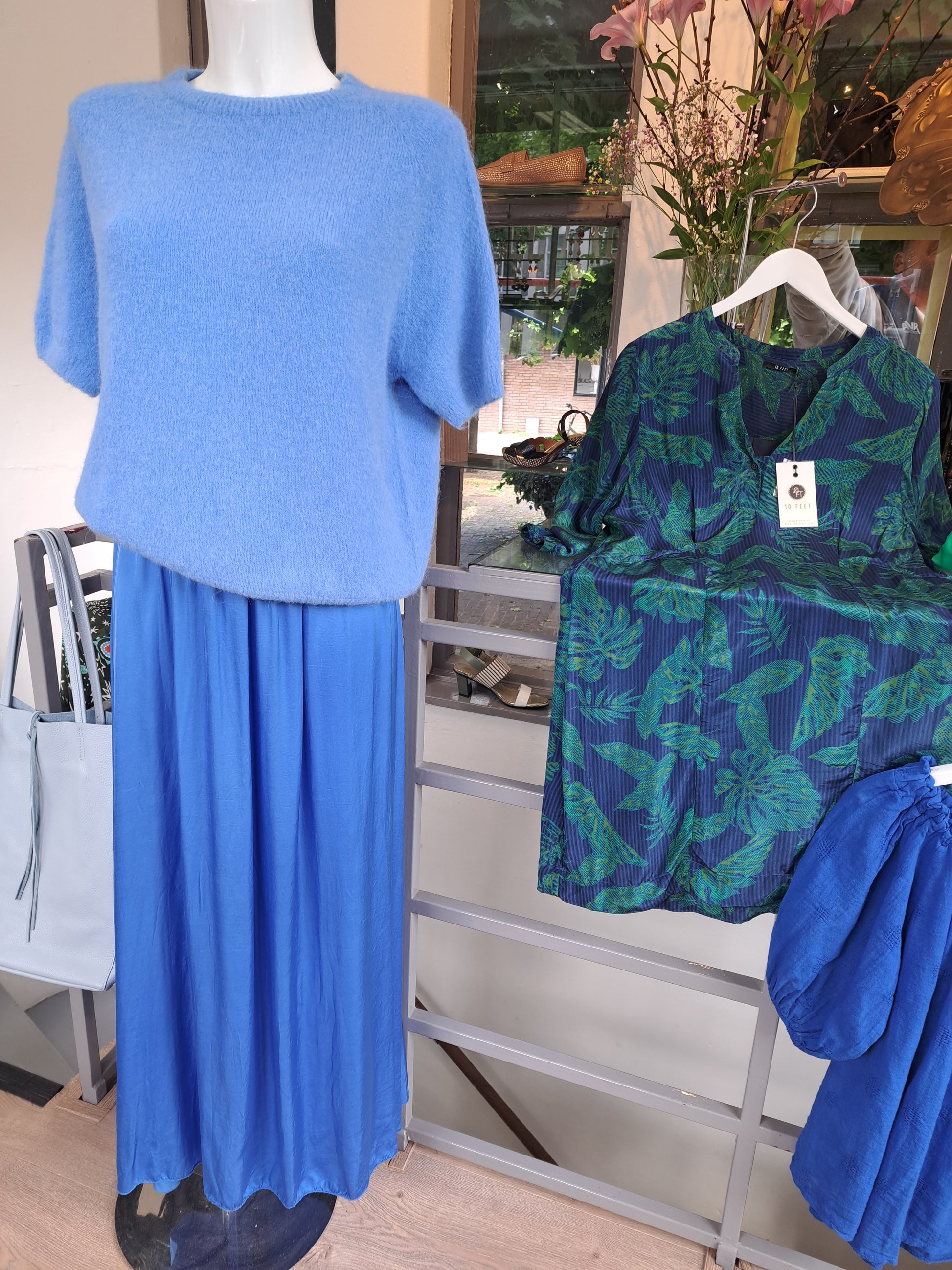 Moeiteloos chic en eindeloos veelzijdig – de Mia lange Rok Blauw is een onmisbaar item voor de garderobe. Met een mooi textuur die diepte en beweging toevoegt, is deze rok perfect voor een stijlvolle maar ontspannen uitstraling. De lengte zorgt voor een flatterende silhouet, terwijl de lichtgewicht stof de hele dag door comfort garandeert. Omdat het een elastiche band heeft is het geschikt voor dames van maat S,M en