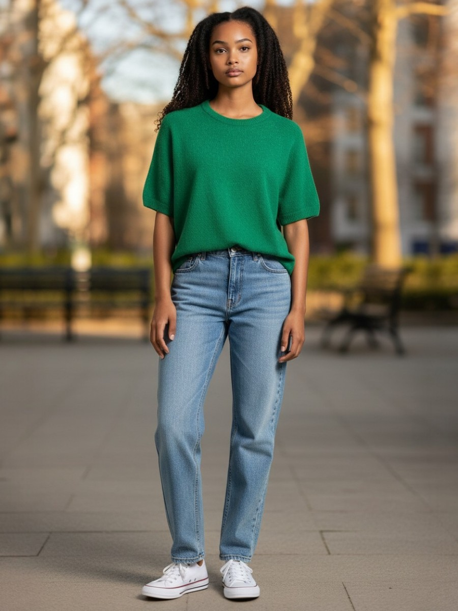 De trendy trui met korte mouwen Green is een perfecte aanvulling op ieders garderobe.