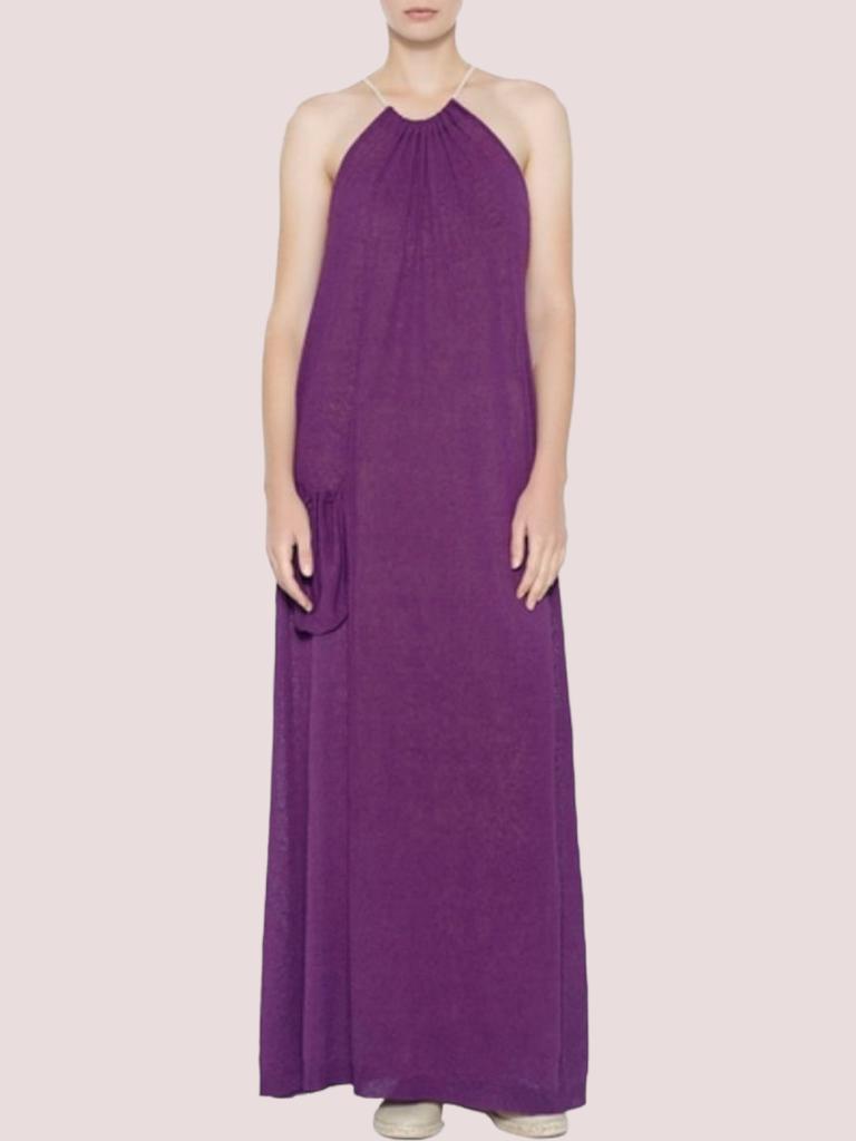 Sarah Pacini Lange Jurk Purper. Een streling voor de zintuigen. De koele, linnen textuur en het geraffineerde, vloeiende ontwerp van deze lange jurk vormen de perfecte ingrediënten om maximaal te genieten van de heerlijk lange zomerdagen. De jurk heeft een creatieve zak aan de zijkant.